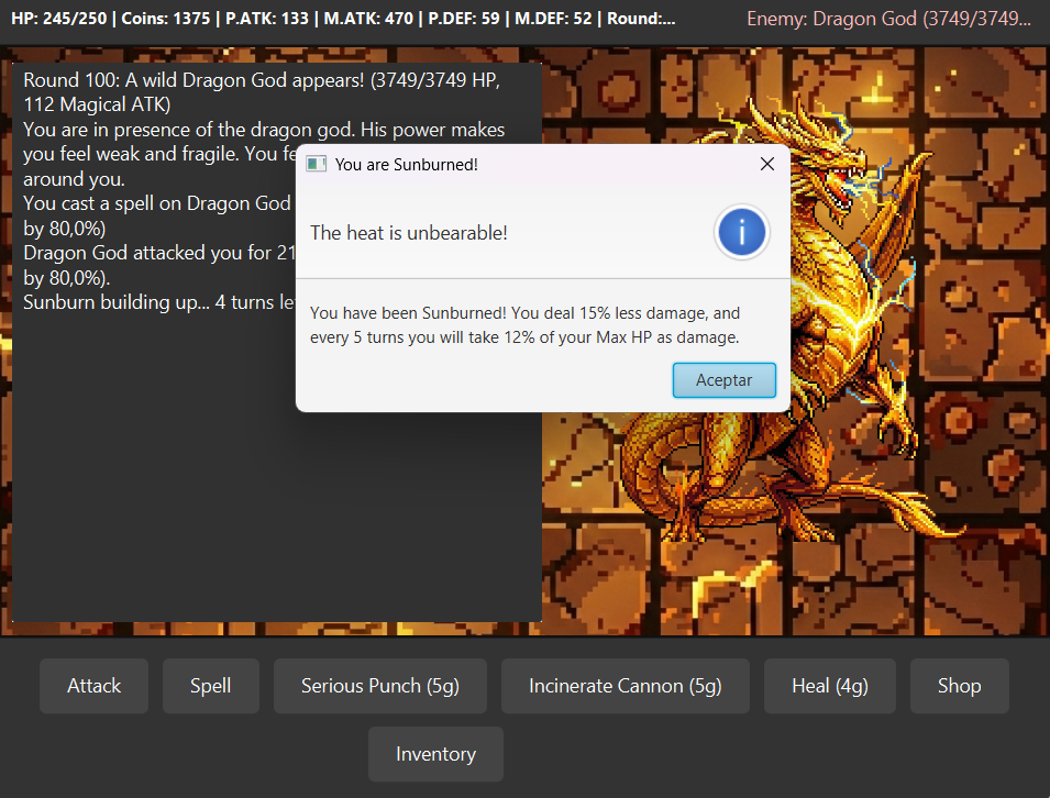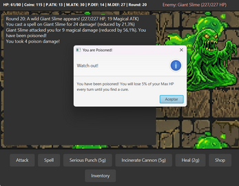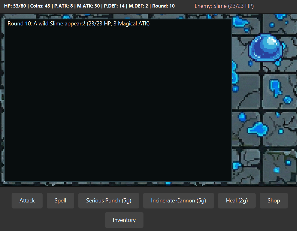 Also, there is a battle mode, in which you and a friend of yours will be able to spread some stat points as wished and fight against eachother! you will need to run the .exe twice tho, as it runs locally and no extra window pops up when hosting the battle.